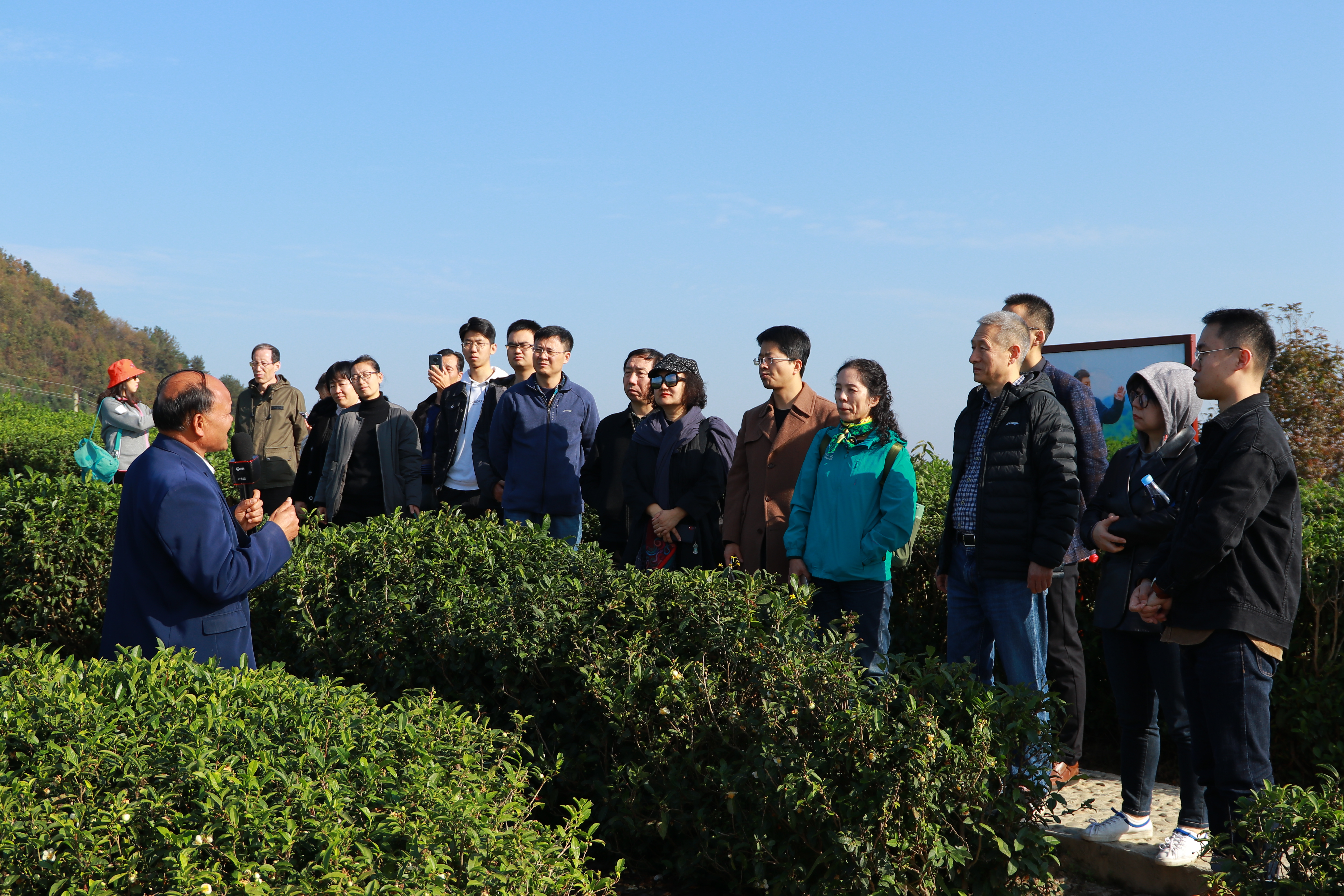 在蒋家坪茶山听取讲解